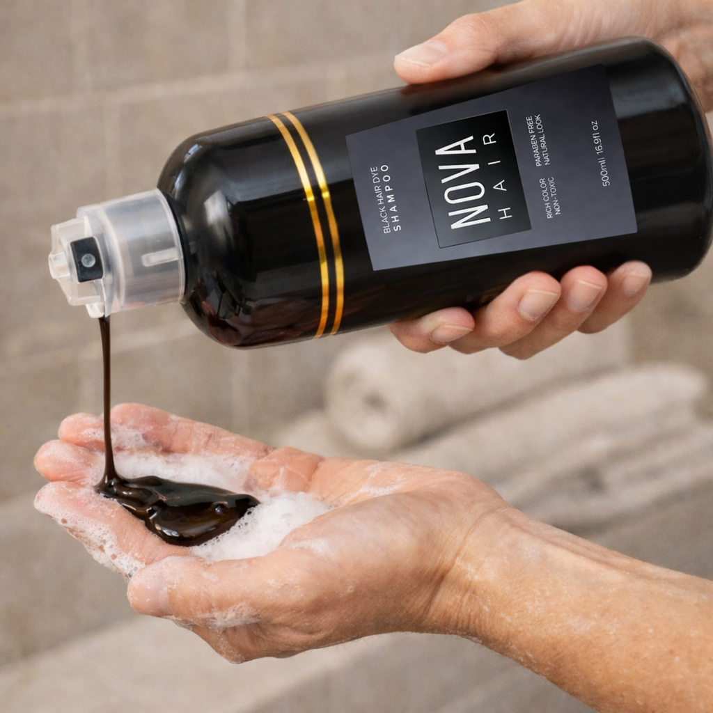 O Shampoo Nova Hair 3 em 1 foi desenvolvido para homens e mulheres que desejam reduzir a aparência dos fios brancos e realçar a cor natural do cabelo de forma prática.